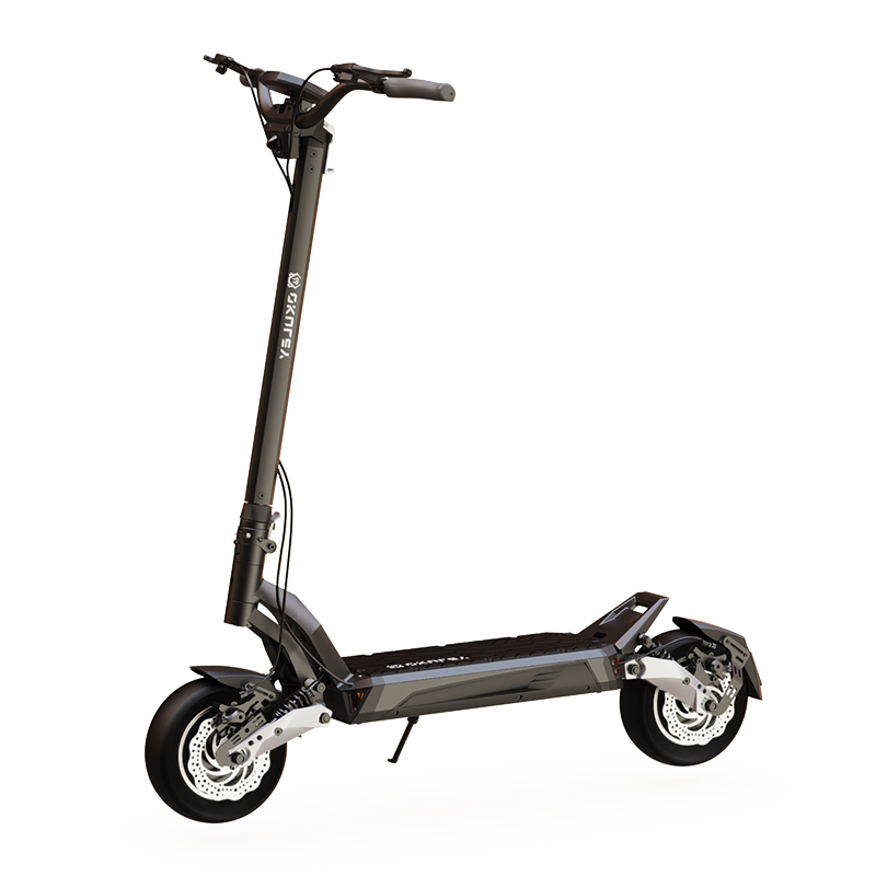 Електричниот скутер за сите терени OKULEY M10 е опремен со пневматски гуми од 10 инчи, обезбедувајќи одлично држење и удобност при возењето. Неговиот уникатен дизајн овозможува брзо расклопување. Лесен за одржување. Предните и задните двојни пружински амортизери можат да го намалат ударот од нерамните патишта. Покрај тоа, тој обезбедува и опции за диск сопирачка и хидраулични сопирачки за подобрена безбедност.